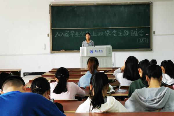首先由副班长唐梦情说了“双选会”我们大家需要的注意事项,除了考试,每位同学必须到场,有序进场有序退场。我们已经大三,到了选择自己道路的时候了:是考研还是直接出来工作,都需要有一个明确的目标。