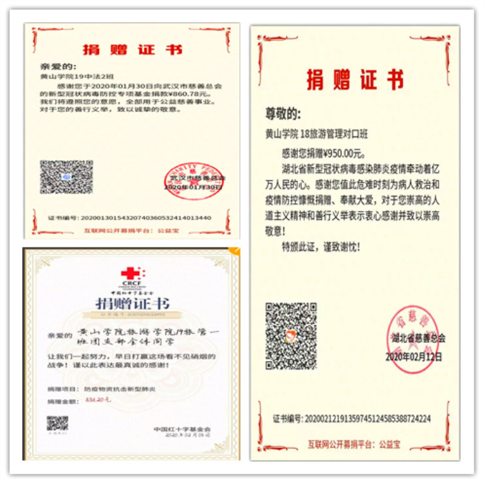 疾灾无情,人有大爱。该院班级团支部、个人虽无法参与到抵抗疫情的第一线,却纷纷以集体和个人的名义在力所能及的范围内通过各种渠道和方式捐款捐物,为防疫和抗疫工作贡献绵薄之力。