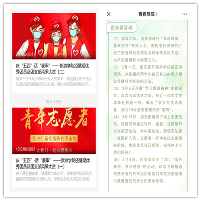 5月2日至5月4日,旅游学院“青春旅院”微信公众号相继发布庆“五四”·话“表率”——疫情期优秀团员、团支部风采大赏。