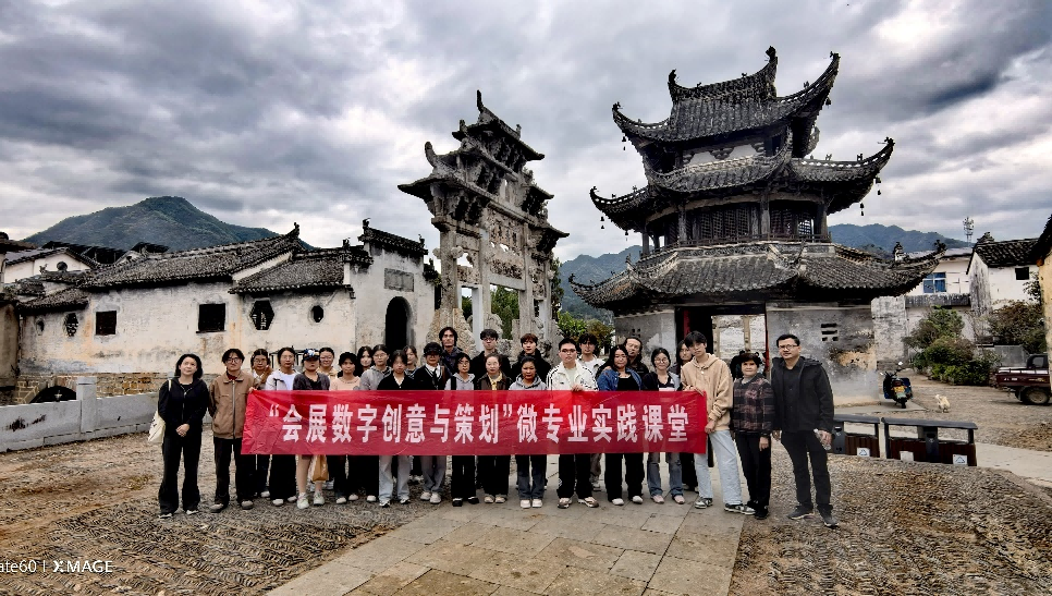 2025年11月5号,黄山学院旅游学院会展数字创意与策划微专业师生在赵蕾、于君、梅哲三位老师的带领下,赴安徽省黄山市歙县许村景区开展课外实地调研活动。本次调研活动共有27名微专业学生参与,通过分组拍摄短视频和专题调研的方式,将课堂理论知识与实地实践相结合。