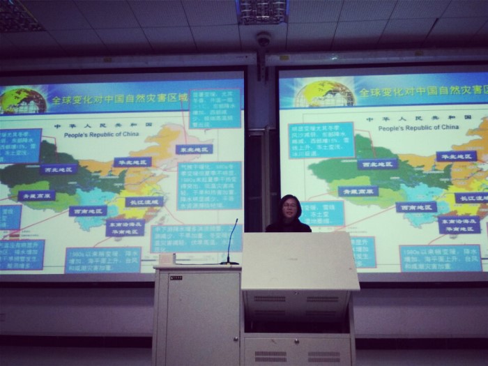 报告会上,张俊香向大家分享了近年来自己与其科研团队学术成果。从中国自然灾害的基本形式开始阐述,着重介绍了气候变化对中国自然灾害的影响,以及自然灾害对旅游业的影响。最后分析了旅游业减轻灾害风险的适应策略。张教授的报告深入浅出,通俗易懂。整场报告会内容丰富,现场气氛活跃,会后同学们积极地与张俊香教授互动。通过此次报告会,同学们对气候变化对旅游业的影响有了更加深入的了解,同时也认识到保护环境的重要意义,这有利于提高学生的旅游的安全意识和保护环境,维持生态平衡的意识。