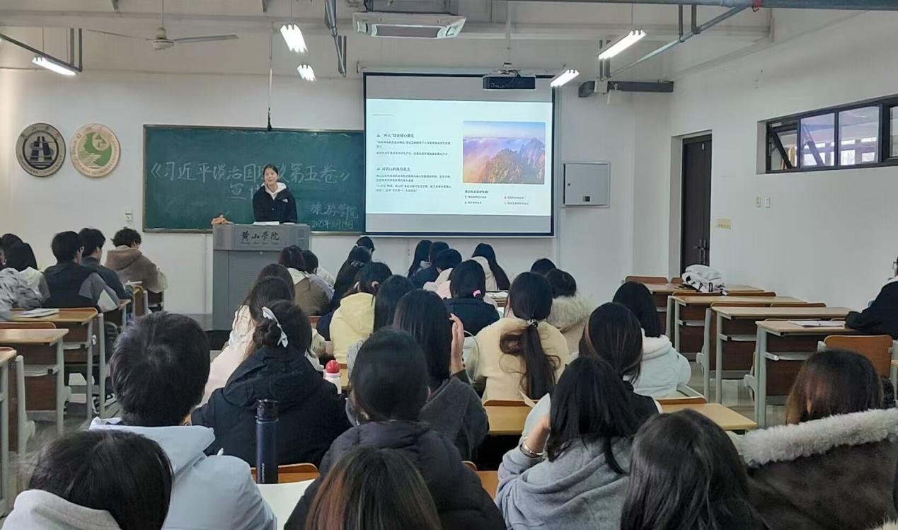 主讲人以“中国式现代化中的旅游担当”为切入点,系统梳理《习近平谈治国理政》第五卷中高质量发展、文化强国、生态文明建设等核心论述,结合习近平总书记考察安徽时“推动文化和旅游融合发展,把文化旅游业打造成为支柱产业”的重要指示,强调黄山旅游业需秉持“以文塑旅,以旅彰文”理念,明确旅游专业在促进民族交往、传承文化根脉、推进生态文明建设中的重要作用。讲解黄山特色旅游资源时,主讲人提出,应借鉴新质生产力发展理念,培育“民宿经济”“山脚经济”,拓展旅游资源维度;同时推动第三产业与数字化管理融合,鼓励青马班成员钻研智慧旅游技术,在景区数字化管理、定制化服务等领域创新,为行业高质量发展注入动能。团课中设置案例研讨环节,围绕黄山智慧旅游建设案例,青马班成员结合专业知识交流实践思路,主讲人针对性点评指导,强化理论应用认知。