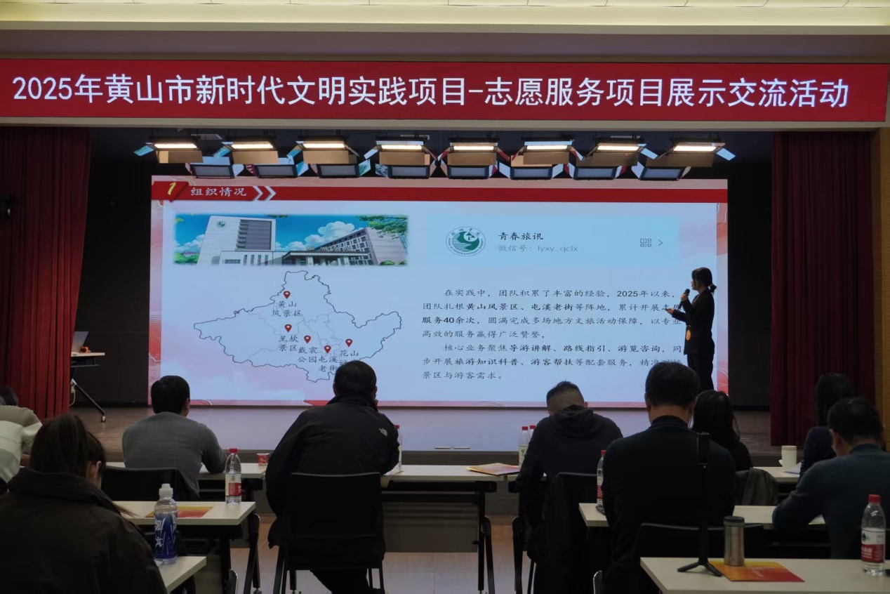 11月22日,由黄山市委宣传部(市文明办)主办、黄山市新时代文明实践指导中心承办的黄山市新时代文明实践项目展演活动在黄山市开放大学举行。旅游学院五彩团光志愿服务队凭借扎实的项目积淀、创新的服务模式与饱满的精神风貌脱颖而出,收获佳绩。