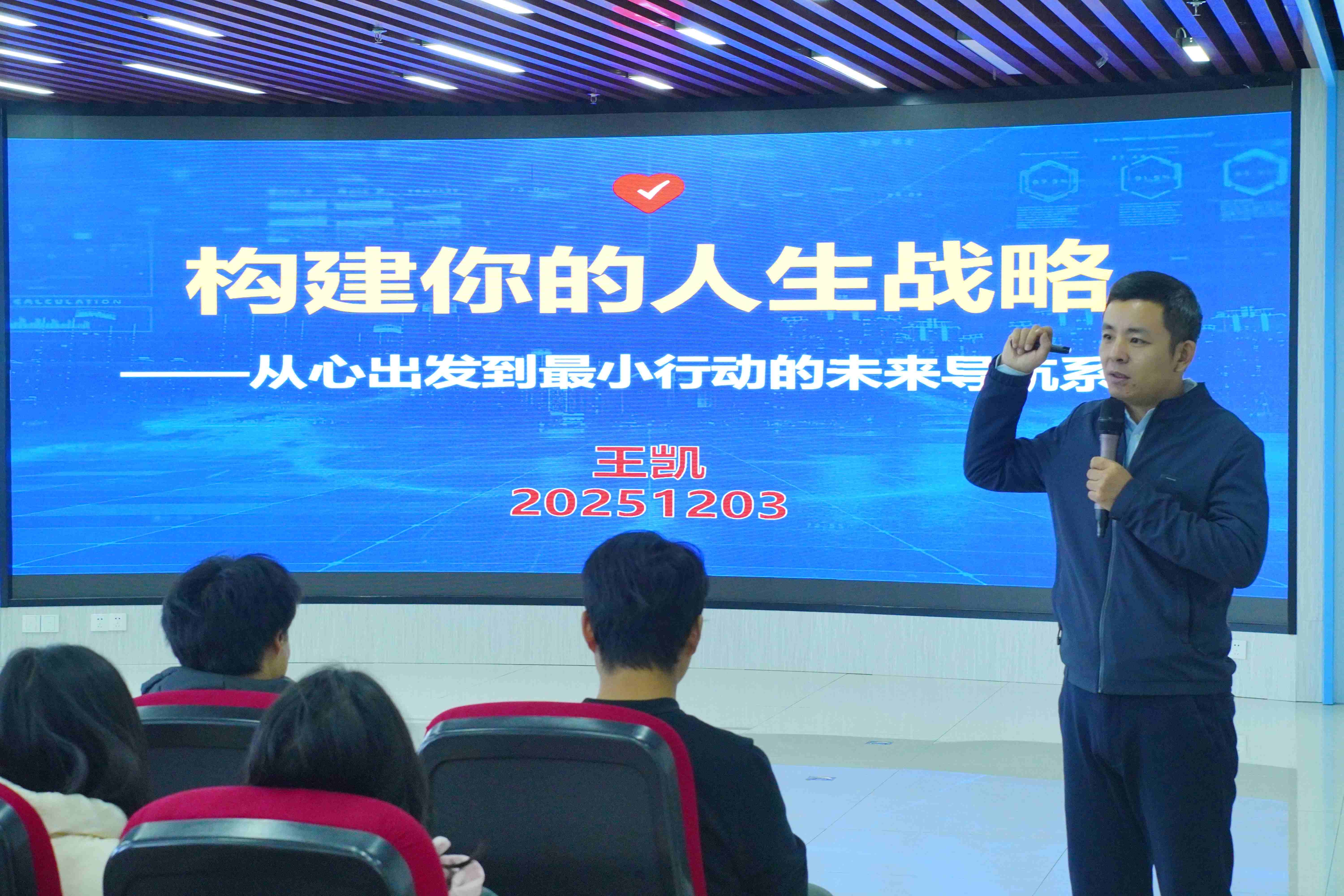 讲座以“构建你的生涯规划与人生战略”为主题,围绕“心之根本”“道之谋划”“术之实践”和“面向未来”四大模块系统展开。内容从价值理念、战略规划到行动方法层层递进,引导学生建立个人发展的“导航系统”,树立终身成长思维,掌握目标管理与实践复盘能力,最终主动把握人生方向。