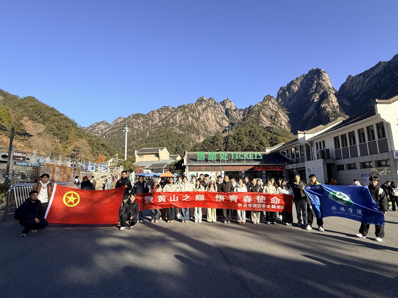 12月15日,旅游学院团委以“登黄山之巅,悟青春使命”为主题,组织支部青年教师代表、学生党员及团学骨干赴黄山风景区开展主题团日活动。活动紧扣党的二十大精神学习要求,聚焦青年思想引领与实践能力培养,将理论学习与实地体验深度结合,以“行走的思政课”为载体,推动思想引领、专业实践与意志锻造有机融合,引导青年师生在实践中锤炼意志品质、坚定理想信念、勇担时代使命。