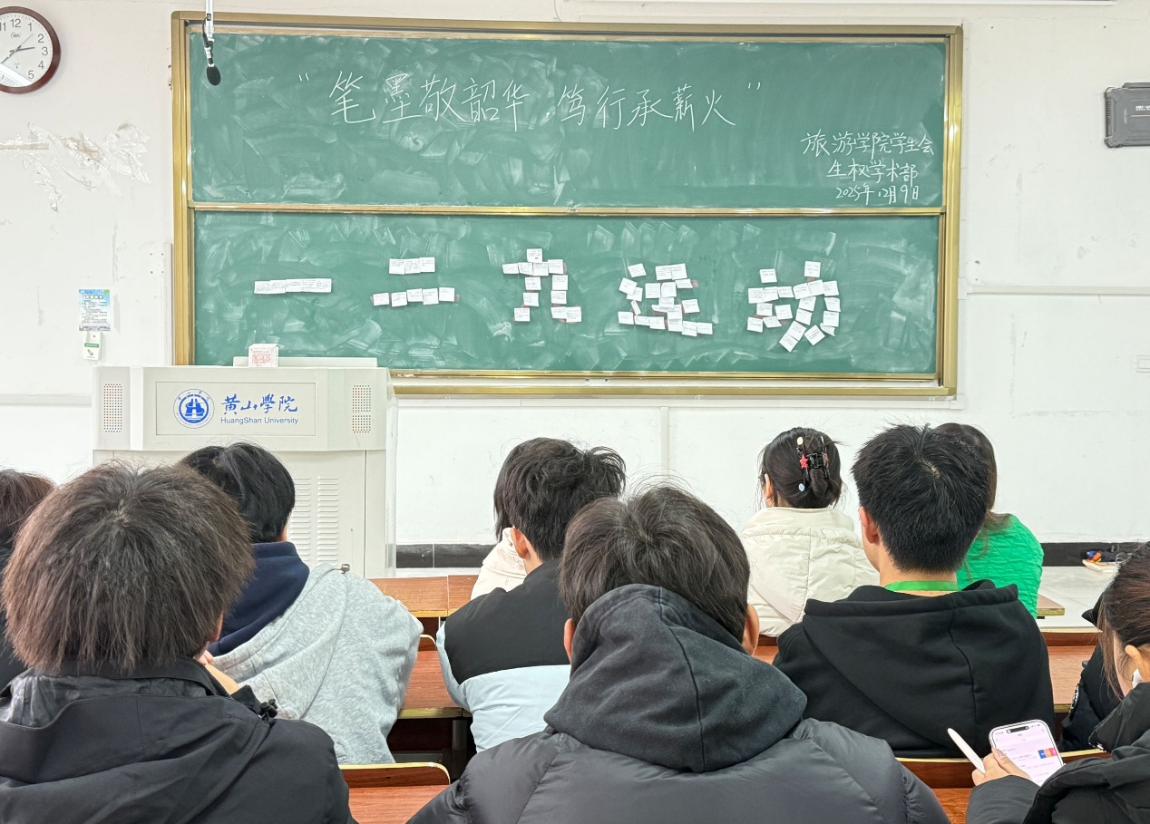 12月9日下午,旅游学院在文端楼2205教室开展纪念“一二·九运动”90周年主题活动,学子们以书写便利贴、贴于黑板的形式,将青春感悟与爱国情怀凝于笔端,传承红色精神。