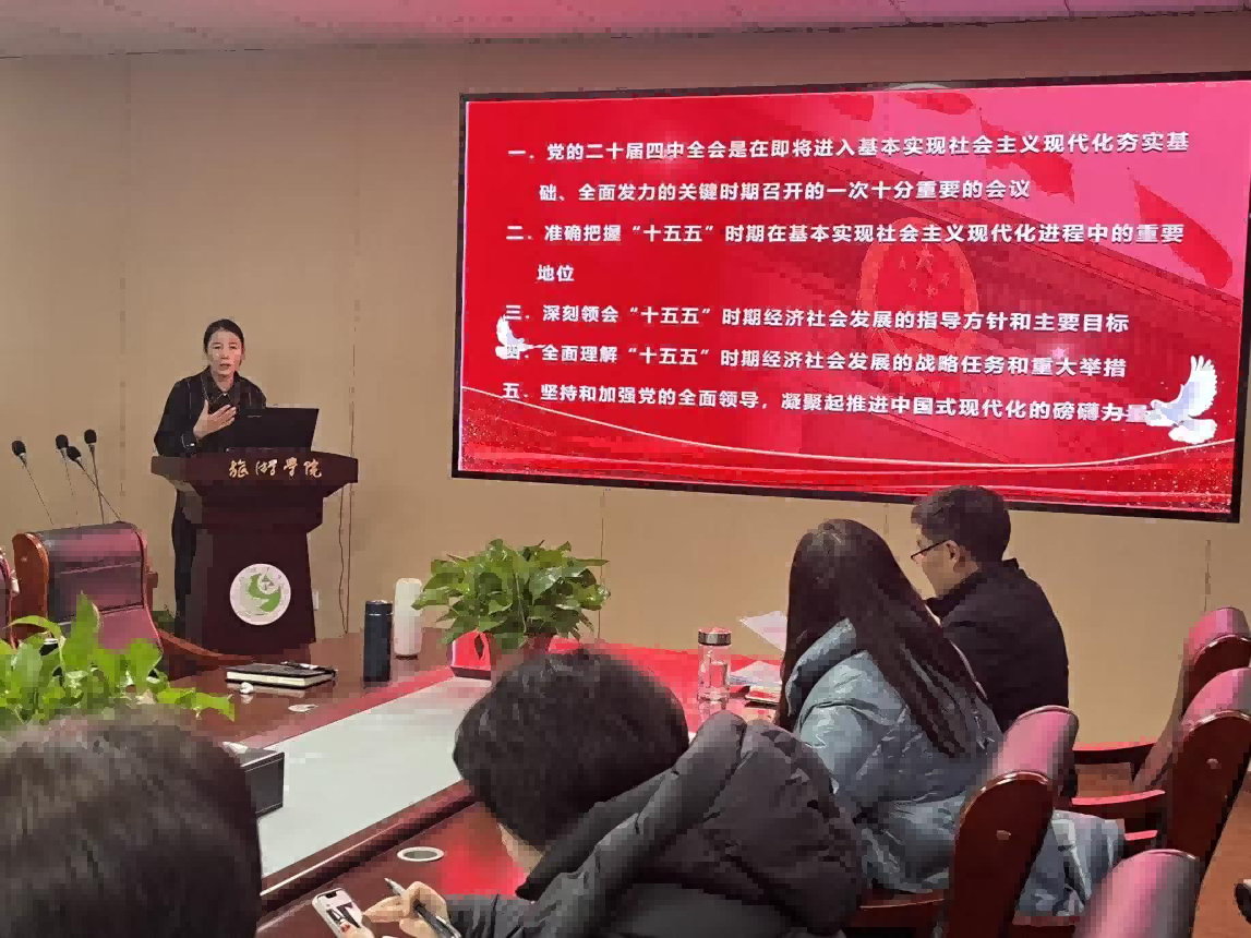 为深入学习贯彻党的二十届四中全会精神核心要义,切实将理论学习融入学院事业发展与育人实践,12月24日下午,旅游学院在院会议室举行党的二十届四中全会精神专题宣讲会,特邀马克思主义学院专职思政教师汪靓作宣讲报告。学院全体教师参加宣讲会。会议由旅游学院党委书记孙克奎主持。