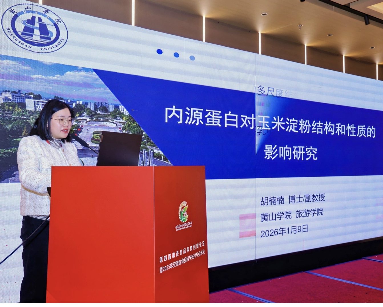 1月8日至9日,第四届徽派食品科技创新论坛暨2025年安徽省食品科学技术学会年会在滁州隆重召开。本次论坛聚焦徽派食品的传承与创新,汇集了省内外高校、科研院所及行业企业的专家学者,共同探讨食品科技前沿与发展趋势。我校旅游学院烹饪营养与教育专业教研室姜薇、胡楠楠、赵俊朋受邀参会。