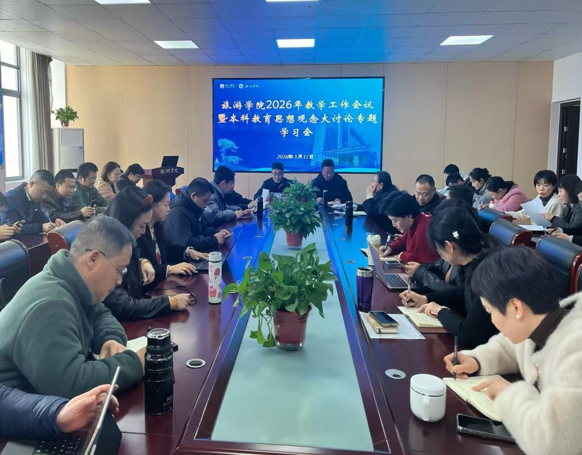 为深入贯彻落实学校2026年教学工作会议精神,进一步解放思想、凝聚共识,3月11日下午,旅游学院在文思楼六楼会议室召开2026年教学工作会议暨本科教育思想观念大讨论专题学习会议。会议围绕学校“深化产教融合、强化数字赋能、创新构建特色应用型人才培养新体系”的主题,结合学院实际开展专题学习研讨。学院党委书记孙克奎主持会议,学院全体教师参加会议。
