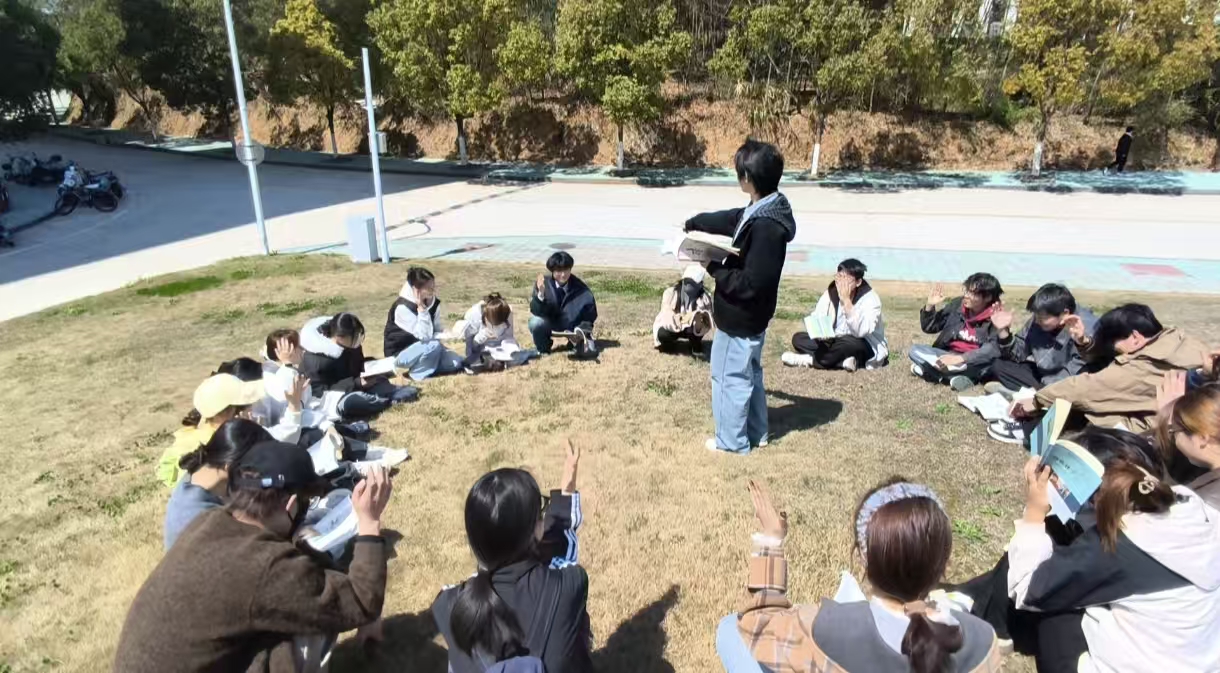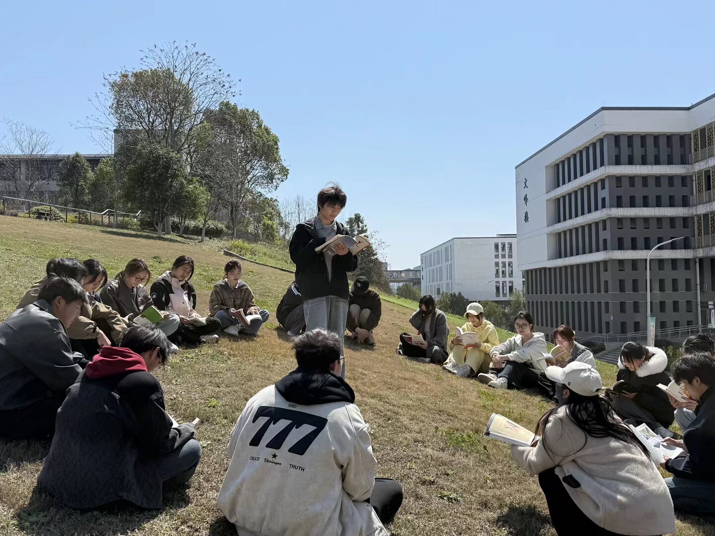3月14日中午,旅游学院团委在文思楼旁草坪举办“青马逐梦·草地谈:在书香与绿意中悟初心”红色阅读分享活动。学院青马班成员齐聚一堂,在草坪上共读红色经典、交流阅读体会,感受思想与自然交融的独特氛围。