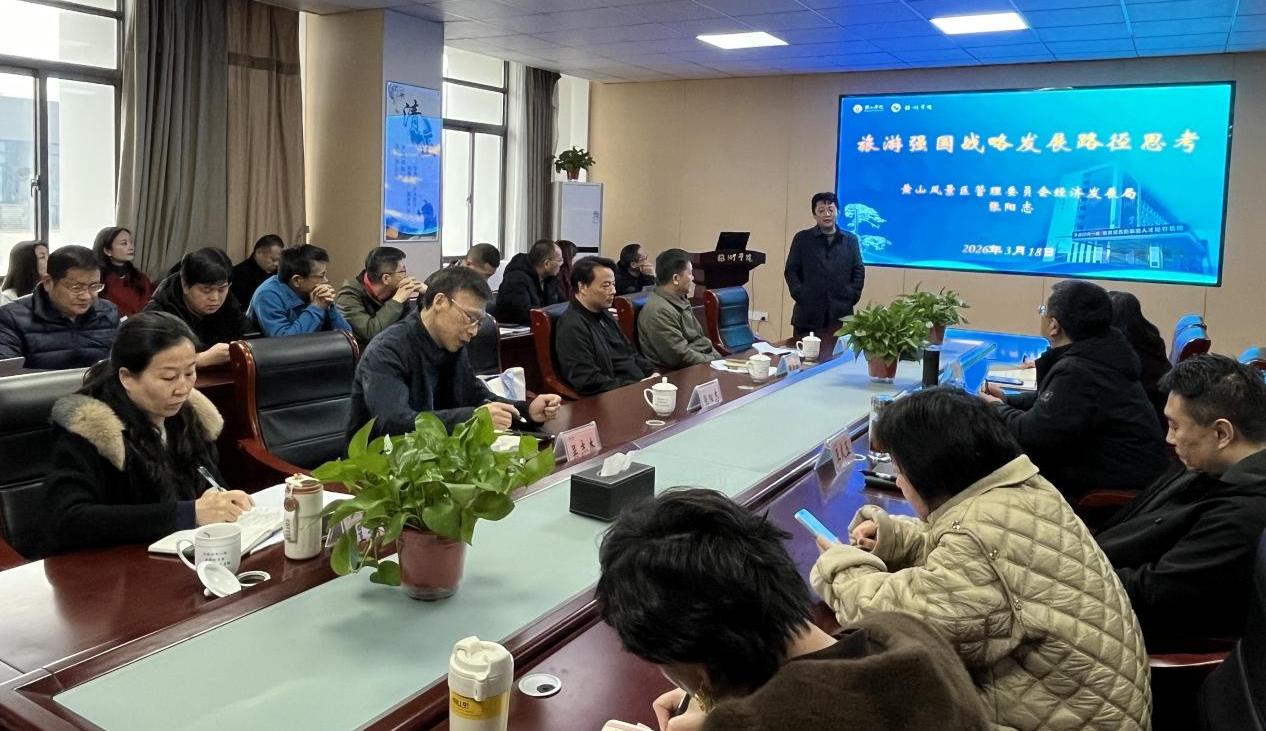 讲座环节,张阳志书记以“关于旅游强国战略建设思考” 为主题开展专题分享。他围绕旅游强国战略建设要求,结合黄山景区作为世界双重遗产地的丰富实践经验,分享了遗产地在文旅融合、生态保护、旅游供给完善、全域旅游发展中的实践路径,为我院教师带来了前沿思考与实践启发。