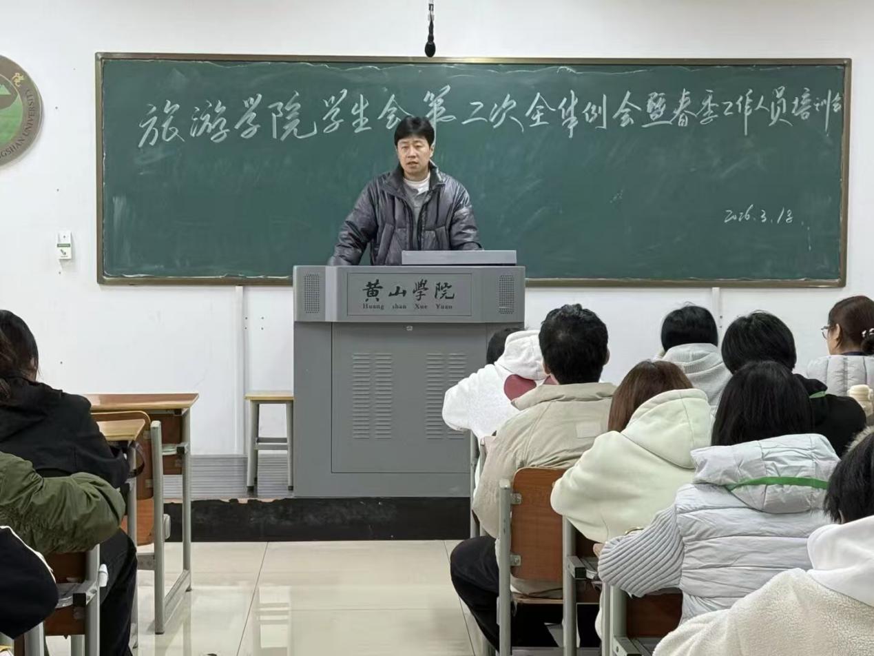 3月18日下午,旅游学院学生会第二次全体例会暨春季工作人员培训会在文思楼71001教室召开。旅游学院团委书记刘宁晖出席会议,学生会主席团主持,全体成员参会。
