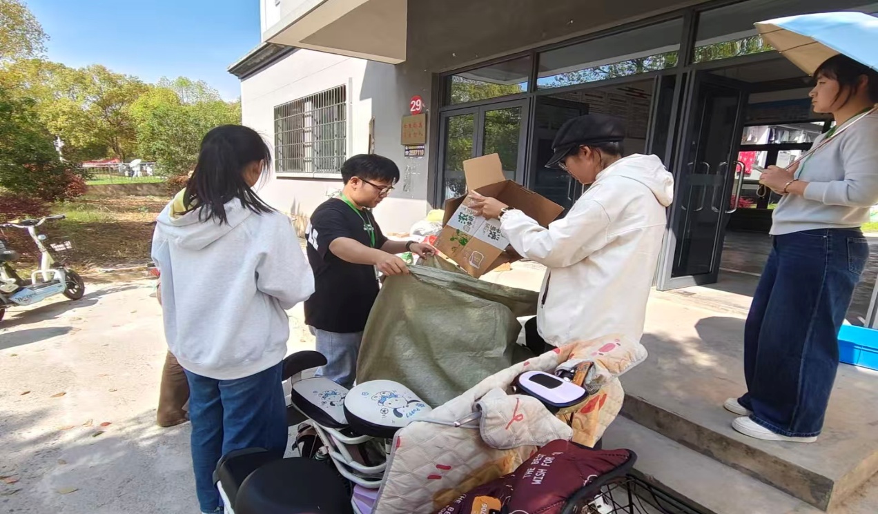 活动现场,工作人员提前布置好回收点位、张贴分类标识、规划活动流程,同时做好物资收纳与后续变卖渠道对接,确保可回收物高效流转,精准转化为公益帮扶资金。工作人员向同学们细致讲解垃圾分类知识、废旧物资回收的环保意义与公益价值,倡导勤俭节约、资源循环利用的生活习惯。同学们携带整理好的纸箱、塑料瓶等可回收物资有序到场,在工作人员引导下完成分类投放、登记清点与集中打包,工作人员共同将废旧物资搬运至集中存放点,所有物资变卖所得将全部用于帮扶困难群体。