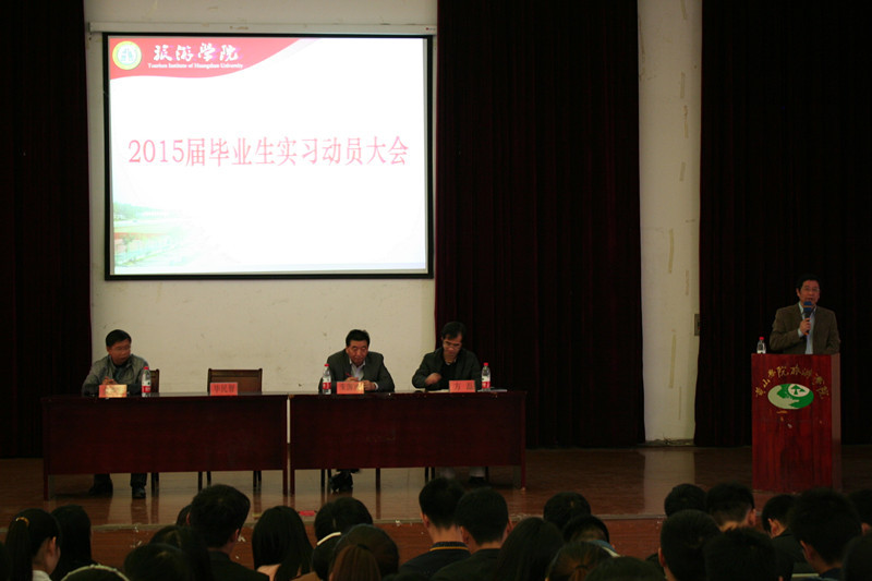 10月29日下午,旅游学院在北区报告厅举行2015届毕业生及学生党员、入党积极分子实习动员大会。旅游学院党总支书记毕民智、院长朱国兴、党总支副书记方磊、院长助理金声琅等参加会议。会议由方磊主持。