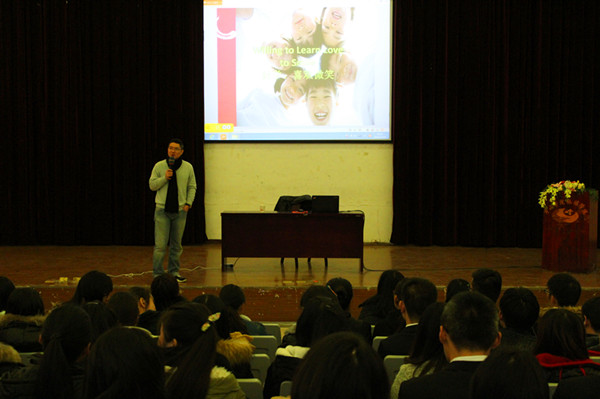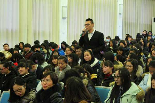 讲座伊始,魏勇先生以服务入题,结合酒店故事向同学阐述服务的内涵,强调了酒店人所应具备的专业素养,包括善于人交流;时刻保持微笑;团队合作精神等。随后,就其所在的餐饮部进行详细介绍,带领同学们走进餐饮部,深入了解酒店餐饮部的职责及日常工作,并以其20余年的职业生涯为例,强调了制定酒店职业发展目标的重要性。讲座氛围活跃,在场同学认真聆听,不时响起阵阵掌声。在提问环节中,同学们积极主动参与,就如何更好的服务顾客、在工作遇到困难如何解决等问题进行提问,魏勇先生结合自身经历为同学们一一解答。