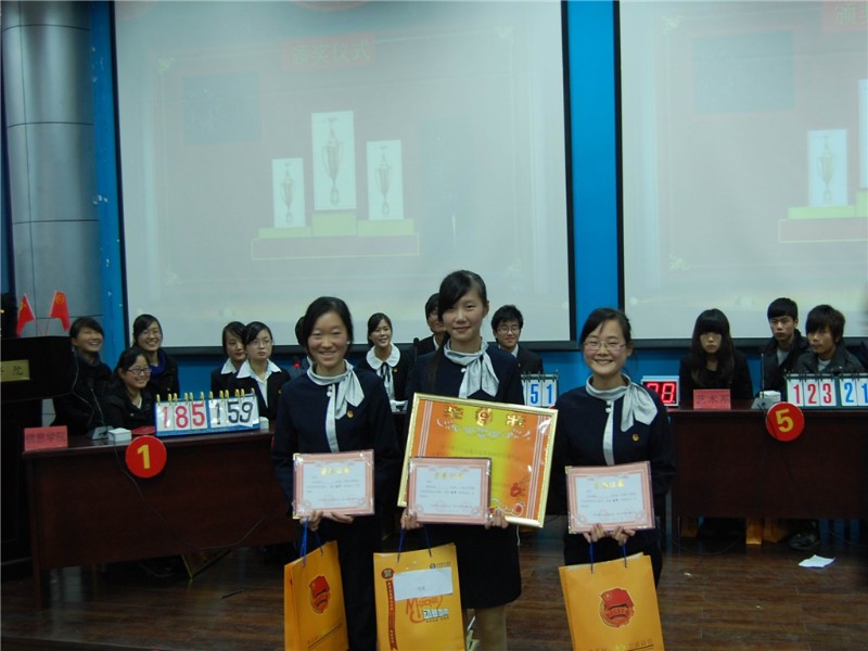 旅游学院代表队由08旅本陈丽娟、09旅专李凝珏、09旅本杨伊三名同学组成,此次大赛共有包括旅游学院、信息学院、社科系在内的八个代表队进入决赛。经过激烈的角逐,旅游学院代表队最终以251分的高分夺得此次大赛一等奖。