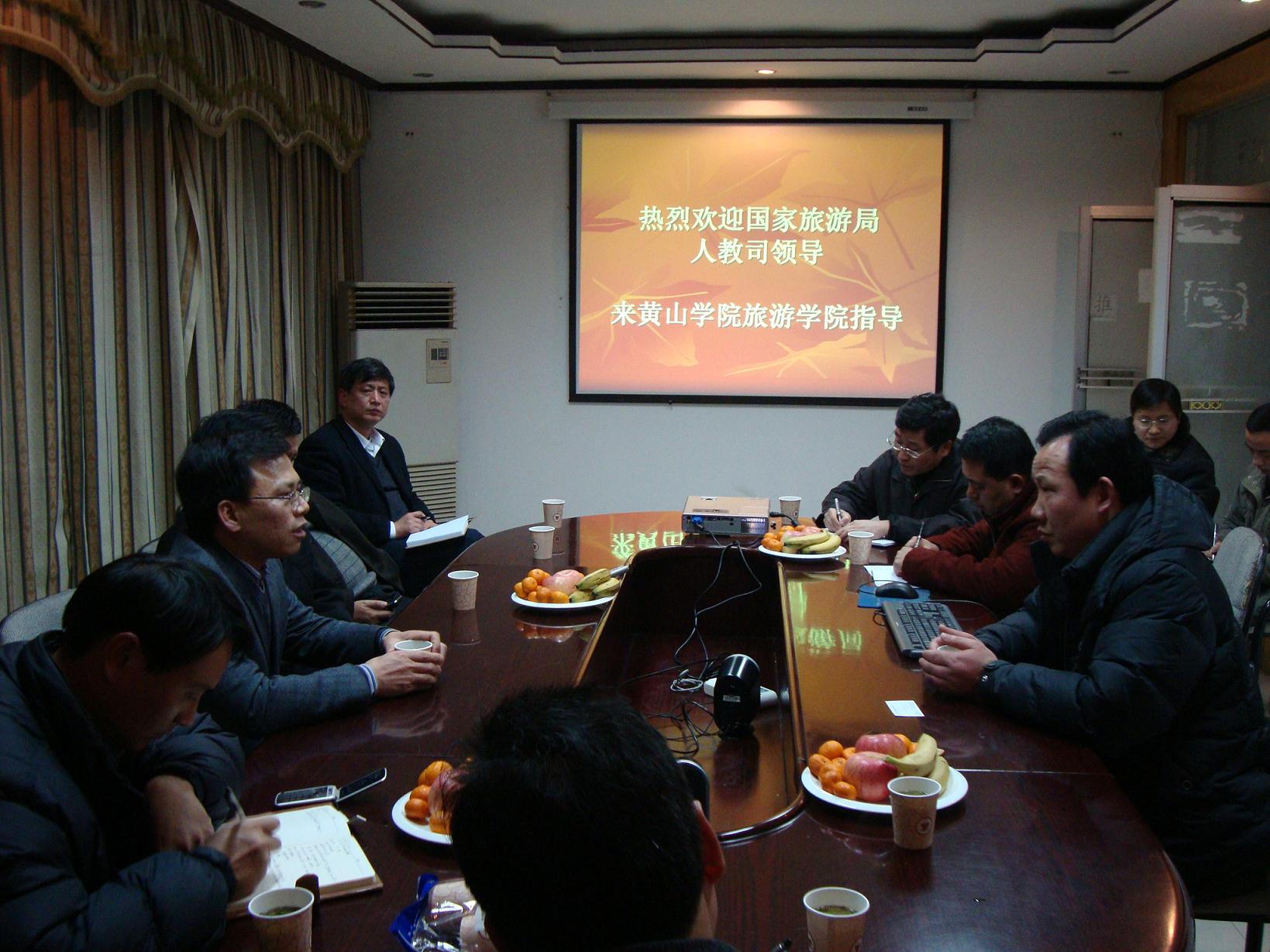 3月3日晚,国家旅游局人教司司长陈献春一行在黄山市副市长徐健敏等陪同下到黄山学院旅游学院调研,并与旅游学院院长胡善风、党总支书记毕民智、副院长朱国兴等进行了座谈。