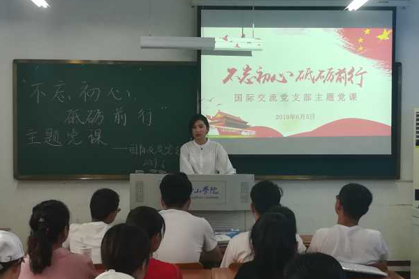 6月5日下午,国际交流党支部毕业生党员最后一堂党课以“不忘初心,砥砺前行”为主题在横江校区1210教室举行。国际交流党支部书记黄惠敏,2015级毕业生党员、低年级党员及预备党员一同参加了此次“特殊”的党课。