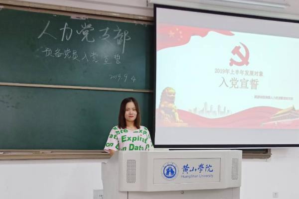 旅游学院人力党支部预备党员入党宣誓活动于9月4号在率水校区2212教室举办,参与人员主要有旅游学院人力党支部的各位指导老师以及党员发展对象。
