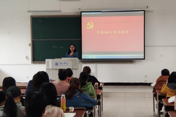党课开始,会展党支部书记丁南老师首先带领各位党员了解了“不忘初心,牢记使命”这句口号的由来。以寻找中国共产党的“初心”和“使命”为切入点,指出中国共产党自诞生的那一天起,就把为人民谋幸福作为不变的初心,始终牢记“立党为公、执政为民”使命,带领全国各族人民经过艰苦斗争取得伟大胜利,从站起来到富起来、强起来。丁南书记希望全体学生党员要以习近平新时代中国特色社会主义思想为指导,不忘初心、牢记使命,始终忠诚于党,学好专业知识,牢记脚踏实地,用实践去检验真理。做新时代的先行者、开拓者,为实现“两个一百年”奋斗目标、实现中华民族伟大复兴中国梦而不懈奋斗。
