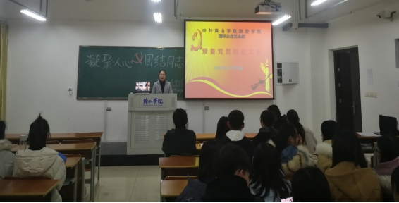 12月9日晚19:30,旅游学院国际交流党支部于率水校区71001室召开预备党员转正支部大会,会议由支部书记凌淑瑜主持,旅游学院党委副书记方磊、组织宣传委员黄惠敏、纪检统战委员齐新征以及在校学生党员、预备党员及入党积极分子参加本次会议,校外实习、出国学习党员、预备党员同学通过视频连接参会。