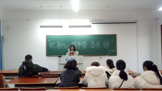 为加深全体党员的思想意识,提高同学们的思想觉悟,烹饪党支部组织全体预备党员、在校党员于2019年12月21日上午在5105教室开展“忆初心,明职责,当先锋”的主题党日活动。通过讲述入党故事,回忆入党初心,深化使命感和职责意识,紧密联系当前工作,树立明确目标,在日常工作中“站排头、当标兵”。
