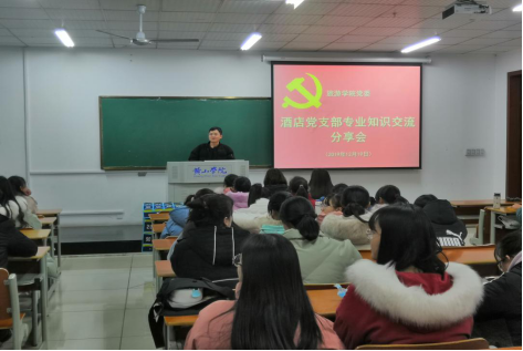 2019年12月19日晚19点,酒店管理党支部在逸夫综合楼5503教室开展酒店管理专业学习知识交流分享会。17级所有预备党员、18级入党积极分子和19级酒店管理全体同学参会。会议旨在于大一第一学期结束前,与19级的同学们再进行一次交流,为尚存疑惑的同学们指点迷津,增强同学们对我们酒店管理专业的信心,为他们勾画出我们专业未来的发展蓝图。