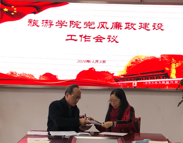 4月8日下午,旅游学院在文思楼旅游学院会议室召开2020年党风廉政建设工作会议。学院党委委员,科级以上干部,党支部书记,教研室主任,实验实训中心主任、副主任,分工会主席参加了会议。会议由党委书记陶卫平主持。