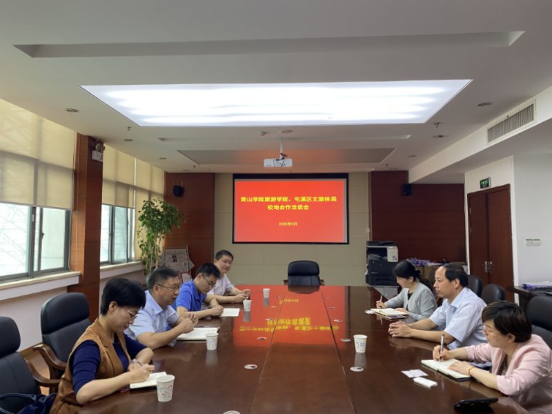 5月7日上午,旅游学院院长金声琅、副院长孙克奎等一行四人赴屯溪区文化旅游体育局游局洽谈校地合作相关事宜。屯溪区政府办公室主任吴顺建、屯溪区文化旅游体育局党组书记、局长程云霞、屯溪区文旅体融合发展中心主任吴虹与旅游学院一行进行了亲切座谈。