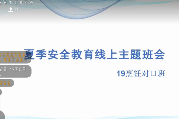 为增强同学们的安全防范意识,提高同学们的安全防范能力,全面普及校园安全常识,19烹饪(对口)班辅导员吕晓珍开展了以“安全与教育”为主题的线上班会。此次班会的内容分为六个版块:户外安全,防灾减灾,不良网贷,网络诈骗,预防传销,禁毒教育。