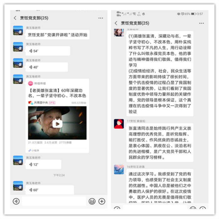 为庆祝中国共产党成立99周年,2020年6月27日下午14时,烹饪党支部开展了“党课开讲啦”活动。活动开始,全体党员观看了央视播出的人物特辑视频《张富清:英雄本色》深入学习了汉中籍老英雄张富清在解放战争中荣立赫赫战功,和平年代深藏功与名六十余载扎根山区、坚守初心、不改本色的先进事迹。引导全体党员向先辈学习,弘扬优良传统,铭记党的奋斗历程,牢记中国共产党人“为中国人民谋幸福,为中华民族谋复兴”的初心和使命。
