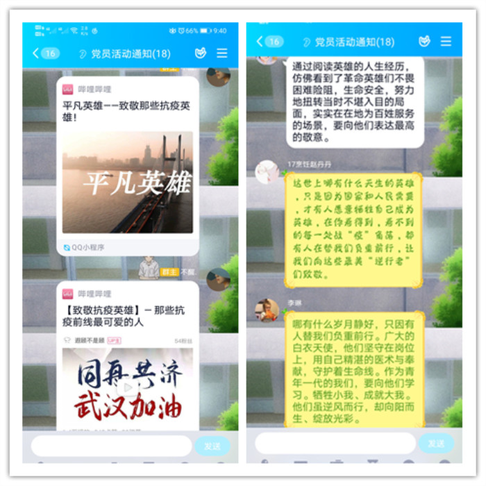 2020年6月29日下午六时,烹饪党支部开展了以“致敬抗疫英雄”为主题的学习活动。烹饪党支部全体党员共同观看了抗疫英雄事迹的视频,深入学习了抗疫英雄的感人事迹,充分感受到党中央始终把人民生命健康放在第一位。学习抗疫精神,传颂英雄事迹,向在疫情关键时期为了大爱奉献小我的英雄们致敬。学习抗疫英雄的先进事迹,鼓励大家铭记抗疫英雄的艰苦奋斗精神,不负韶华,自律自强。活动最后,大家纷纷发表了自己学习后的感悟: