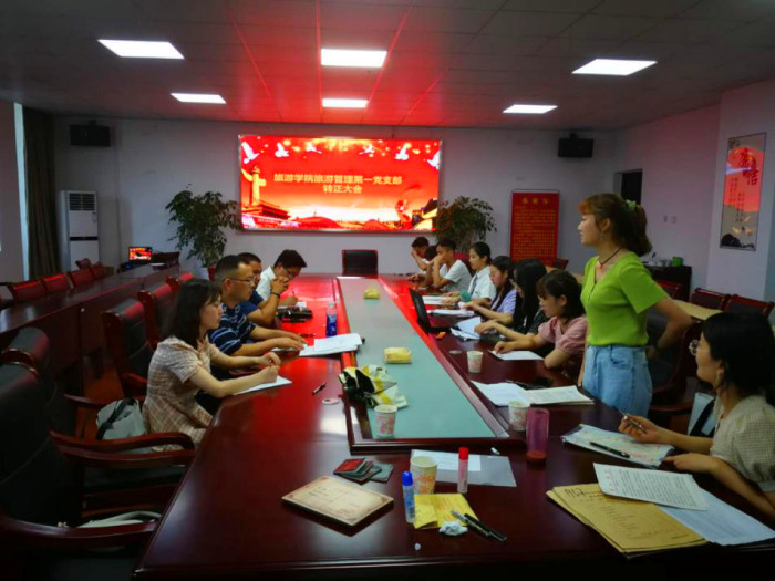 疫情之上,党旗飘飘。2020年6月30日晚,旅游管理第一党支部在旅游学院会议室召开预备党员转正大会。会议由支部书记江学淮主持,全体在校党员参与。