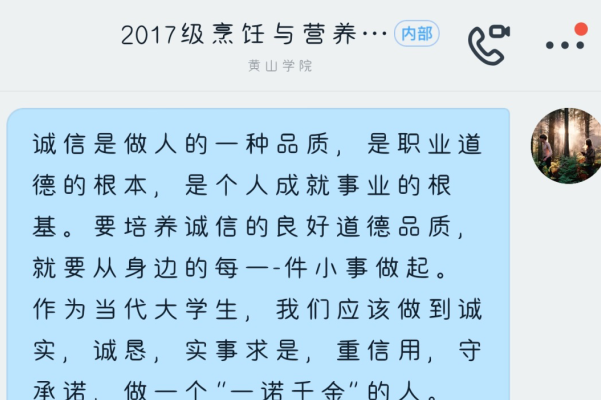 17烹饪班于5月18日上午11点开展线上“诚信教育”主题班会;17烹饪班全体同学参加。