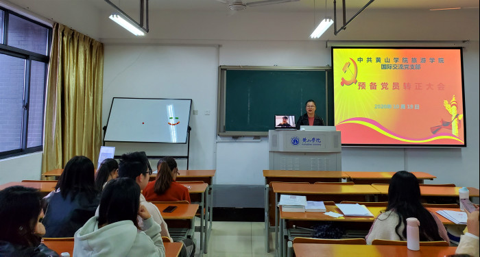 为了按照党的政治路线要求,增强党组织的生机与活力,夯实党的组织基础,10月19日下午,旅游学院国际交流党支部于率水校区71006室召开预备党员转正大会,会议由支部书记凌淑瑜主持,在校学生党员、预备党员及入党积极分子参加本次会议,出国学习的预备党员同学通过视频连接参会。