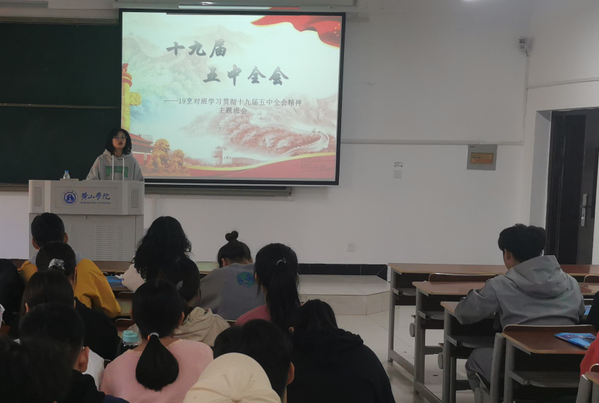 班会通过PPT的形式向同学们展示了十九届五中全会的大致内容。会上,团支书肖梦怡从十九大的主题和主要成果、“十四五”规划、2035远景目标、十二项重要举措几个方面方面进行了宣讲。她紧扣十九大报告原文,围绕“工匠精神”“中国制造2025”等一系列精神进行阐述,赢得大家阵阵热烈的掌声,同学们踊跃发言,他们结合了自己的学习生活经历,畅谈了学习十九大报告的心得体会。