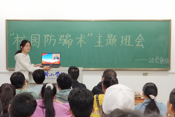 为了进一步提升学生防诈骗能力,增强安全防范意识切实保障广大师生利益,维护学校安全环境,做好防范工作,提升广大学生应对诈骗的能力,11月7日19时,20会展班于逸夫楼5505教室召开“校园防诈骗”主题班会。本次班会由安全委员郭思琪主持,20会展班全体同学积极参与。