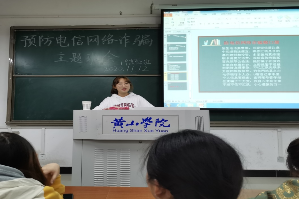 会议开始,安心委李南洋同学首先给同学们介绍了什么是网络诈骗,电信网络诈骗的定义是什么,以及当前出现比较多的诈骗类型。李南洋同学用简单易懂的语言从多个方面给同学们详细地介绍了网络诈骗,是同学们对网络诈骗的认识更加的详细深刻。随后,李南洋又给详细讲述了该如何远离和预防电信网络诈骗,同学们纷纷表示获益匪浅。