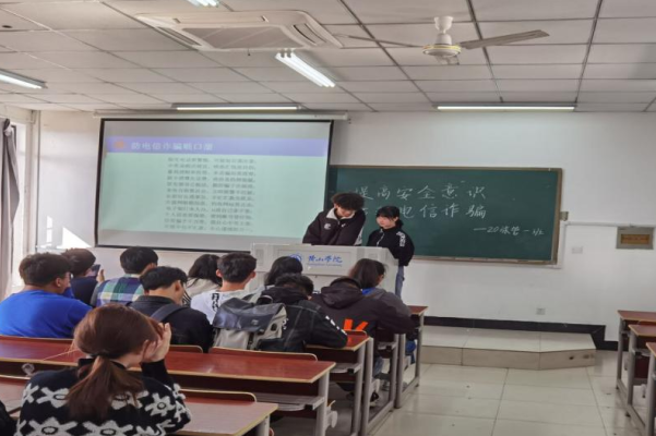 11月6号上午十点20旅管(1)班的同学在文端楼开展了“防电信网络诈骗”的主题班会,安心委员范梁涛负责讲解,安心委员陈盛爱负责记录会议内容。
