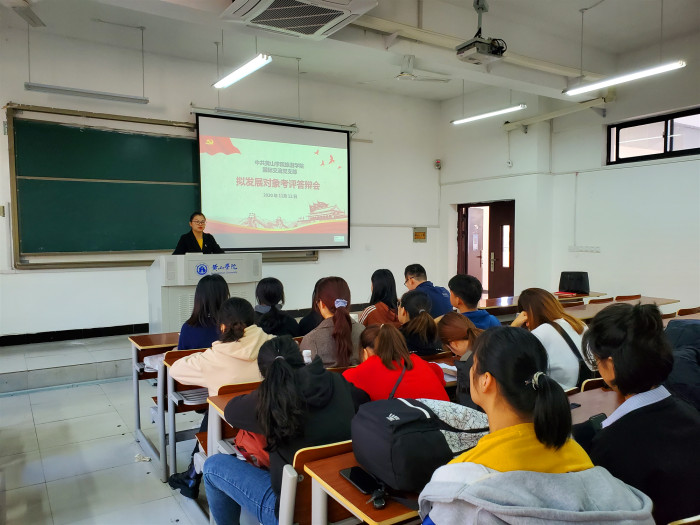 为加强对入党积极分子的培养教育,提高入党积极分子的党性修养,保证党员的发展质量,11月12日上午12:30,旅游学院国际交流党支部于文端楼2205室召开拟发展对象考评答辩会。此次会议由支部书记凌淑瑜主持,学生党员、预备党员及入党积极分子参加本次会议。